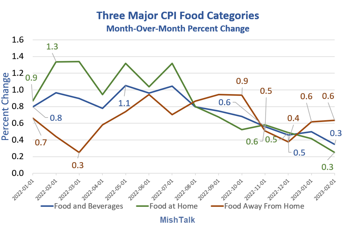 The price of food away from home is up 8.8% over the last year, while the price of food at home is up 8.4% in the same period, according to the Department of Labor.